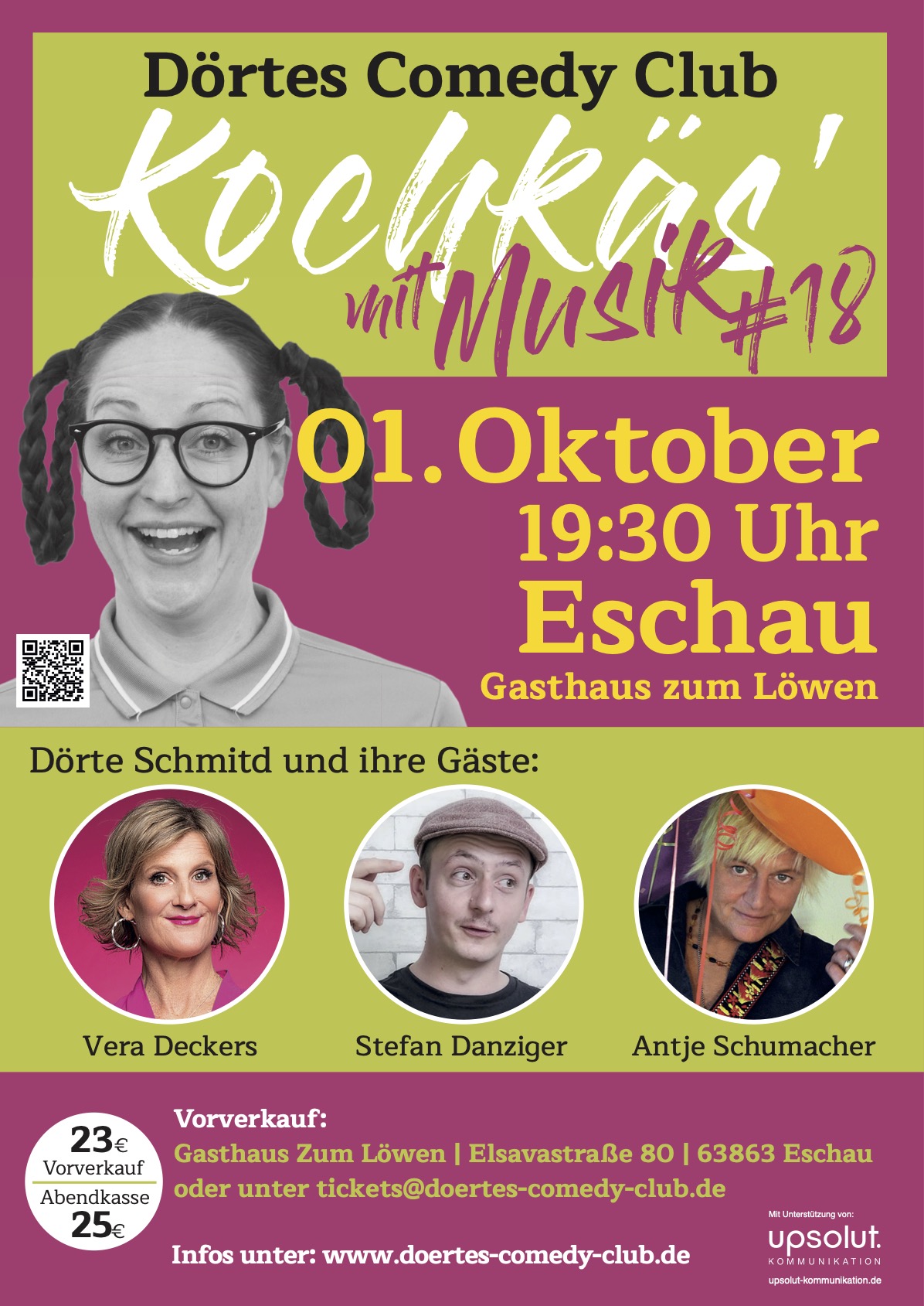 Die Karten behalten Ihre Gültigkeit. Sie können entweder online unter tickets@doertes-comedy-club.de oder im Gasthaus zum Löwen für den 20.Mai ( oder gegen einen Gutschein) umgetauscht werden.